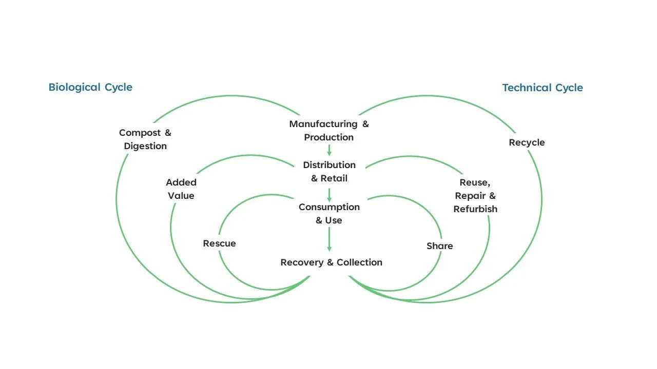 The circular economy helps keep materials in circulation at the highest value for as long as possible.