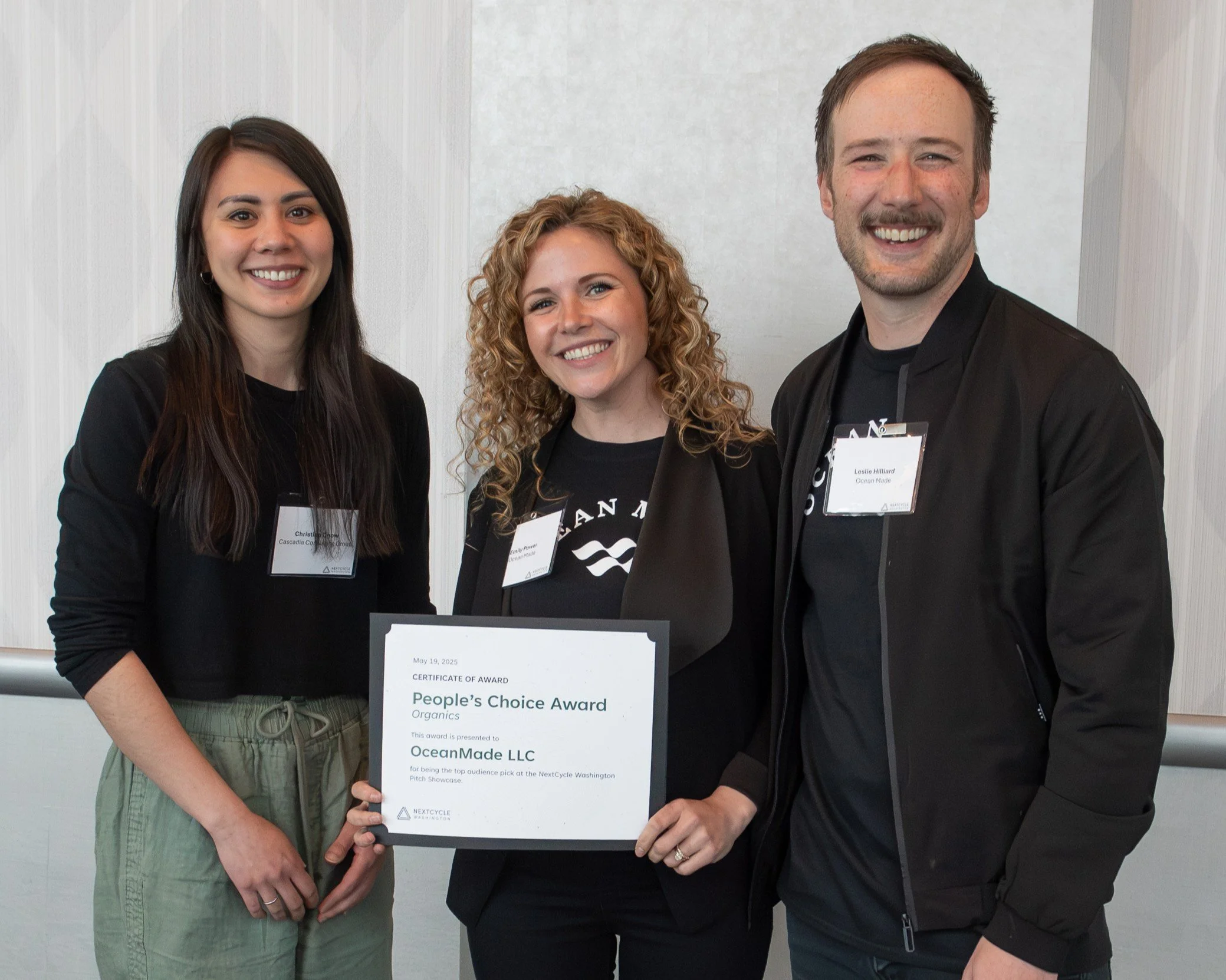 NextCycle Washington continues to accelerate innovative ideas that strengthen the state’s circular economy. Funded by the Washington Department of Ecology, the Washington Recycling Market Development Center, and the Center for Sustainable Food Management, the accelerator supports projects that reuse, repair, recycle, or utilize recovered materials in new products. From transforming used solar panels into power systems for community gardens, to piloting kelp-based alternatives to plastic, the program is helping entrepreneurs turn creative solutions into real impact.
