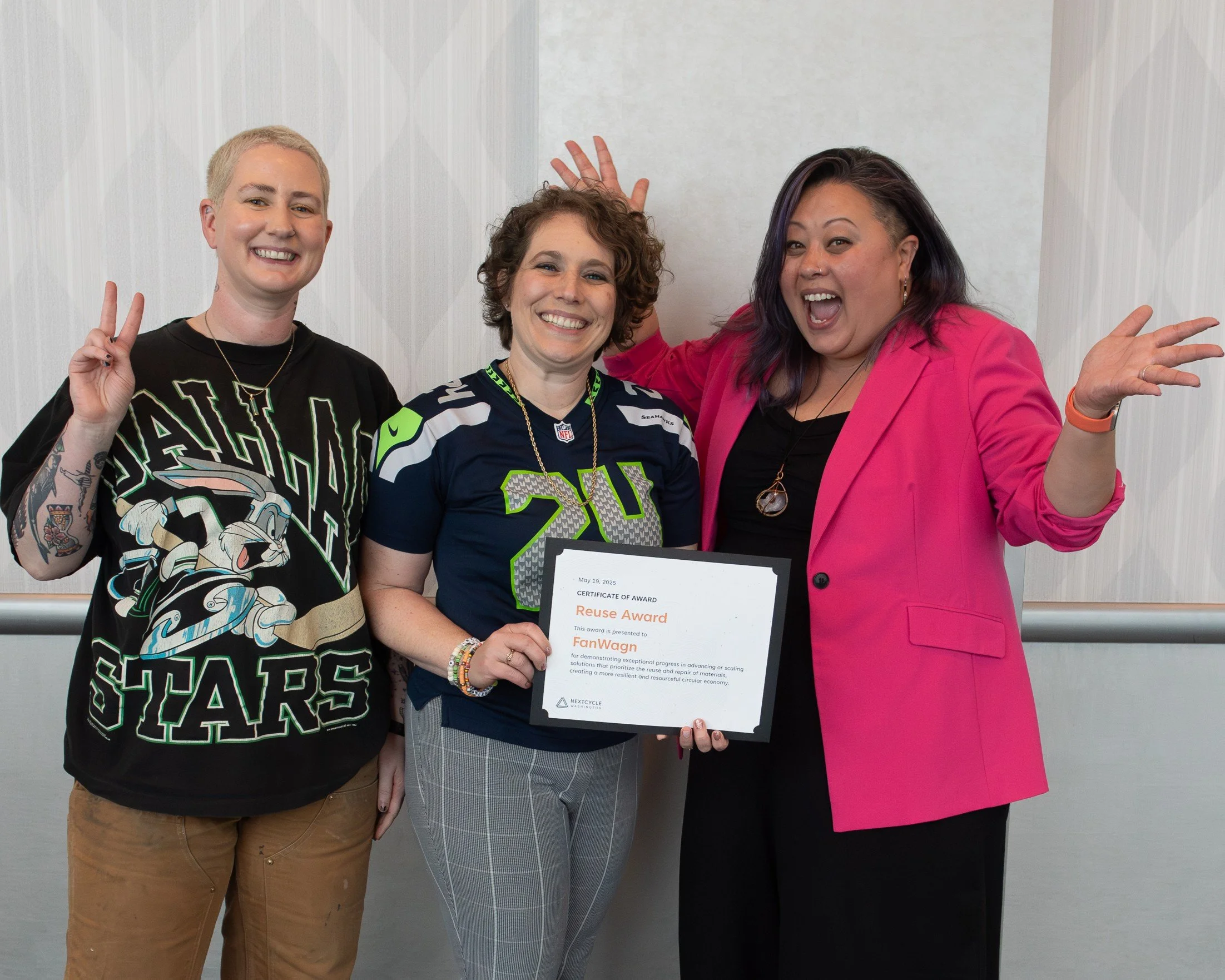 Sixteen entrepreneurs, nonprofits, and small businesses were selected to join the program’s third cohort. Over the course of six months, these teams received business mentoring, technical and marketing support, and connections with potential partners, suppliers, and funders. The program culminated with the 2025 Pitch Showcase on May 19, co-located with the Washington State Recycling Association annual conference.